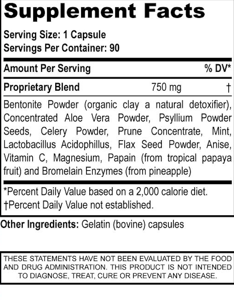 Super Colon Cleanser contiene ingredientes naturales que proporcionan vitaminas, minerales y fibra esenciales para ayudar a limpiar el colon de toxinas y residuos, restablecer el equilibrio bacteriano saludable y favorecer la reabsorción adecuada de agua y nutrientes.
